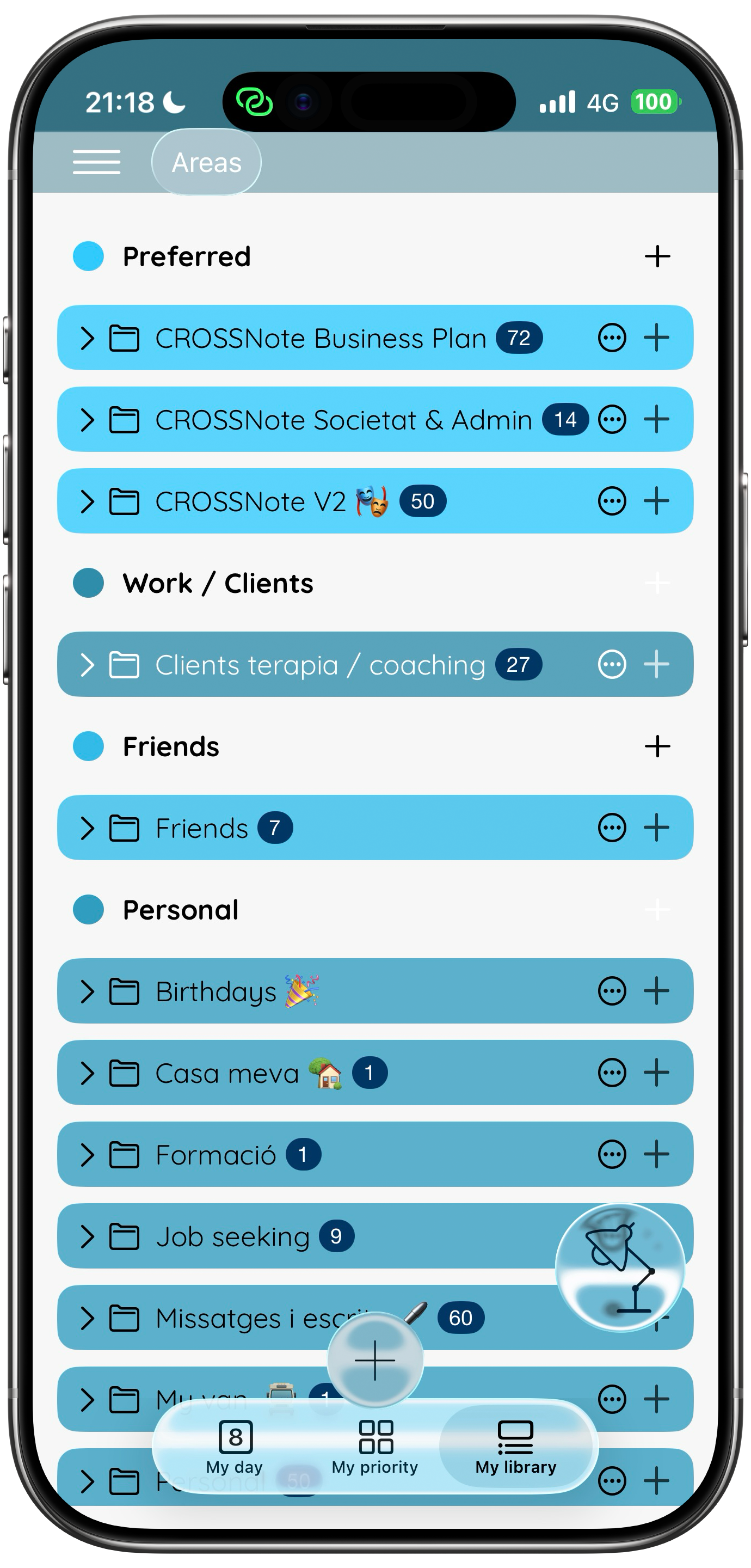 At the center of CROSSNote is the concept of My Day: a view of daily life that brings together time, actions, ideas, health signals, and emotional state in one coherent space.