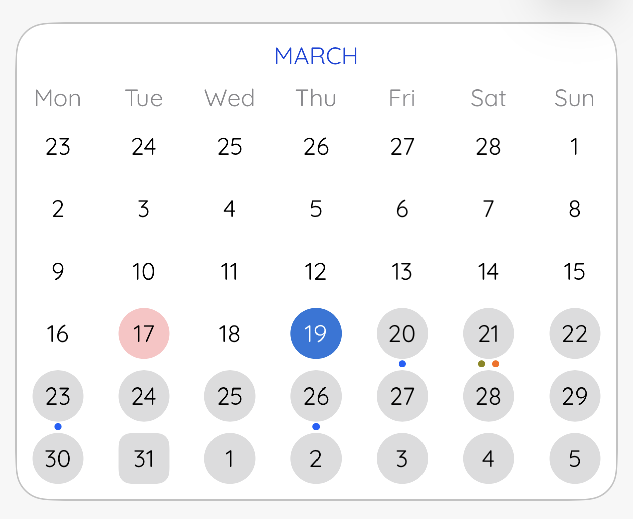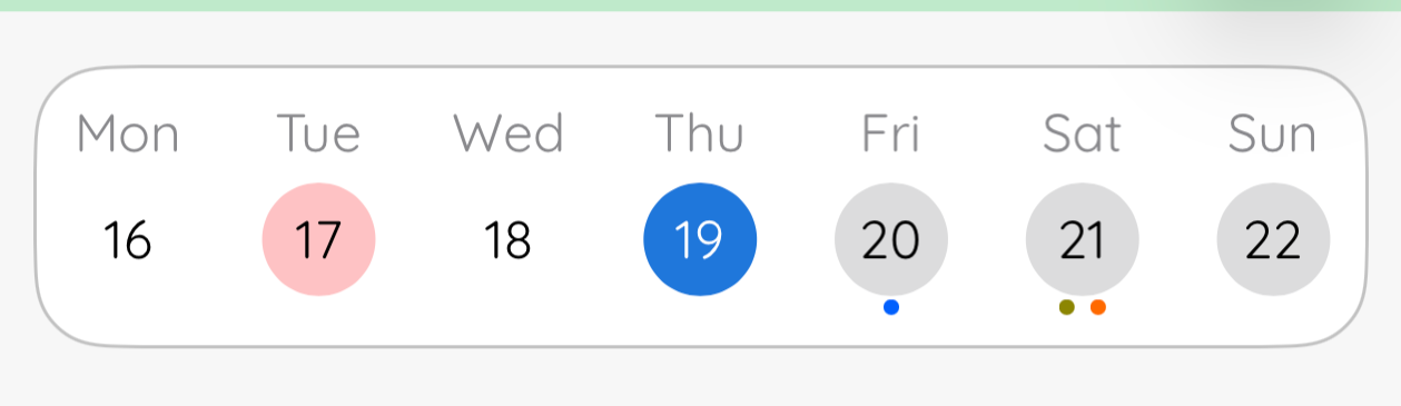 The color of a day indicates its temporal status and whether it still contains unresolved items.